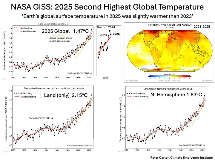 Under en El Niño overfører havet noe av den overflødige varmen og fuktigheten til atmosfæren, som når du koker pasta og kjøkkenet ditt blir dampende. På toppen av den globale oppvarmingstrenden kan en sterk El Niño legge til opptil 0.2 °C til jordens gjennomsnittstemperatur. Det varmeste året som er registrert var 2016, under en spesielt sterk El Niño. Et La Niña-år kan også slå varmerekorder, ettersom oppvarmingstrenden påført av den økende akkumuleringen av klimagasser i atmosfæren kan maskere den avkjølende effekten av naturlige prosesser.